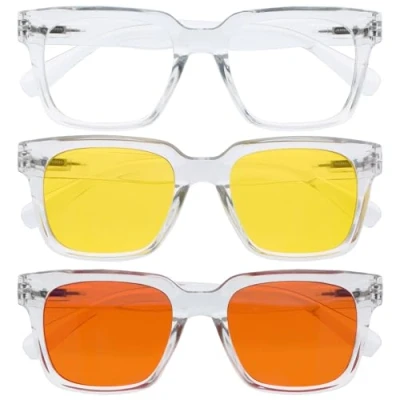 OPULIZE ERA Eye Protection Pack Blue Light Glasses Clear, Yellow & Orange UV400 Lenses Anti Reflective Glare 3 Oversized Frame Work, Outdoor, Driving Sleep Set Men Women
