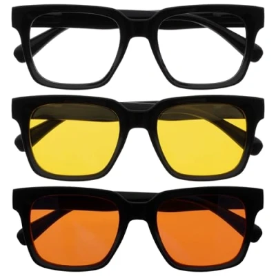 OPULIZE ERA Eye Protection Pack Blue Light Glasses Clear, Yellow & Orange UV400 Lenses Anti Reflective Glare 3 Oversized Frame Work, Outdoor, Driving Sleep Set Men Women