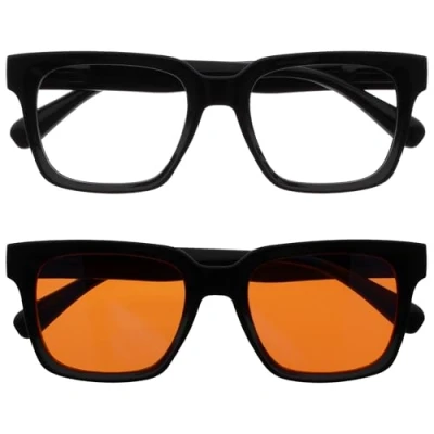 Meditation for your eyes - The most advanced lenses we've ever made, that turn visual noise and distracting light into calm for every part of your day All-Day to Night-Time Protection - Clear lenses for daytime productivity; darker orange lenses for winding down and blocking 99.9% of blue light before bed From Screen Time to Sleep Time - Reduces digital eye strain and supports melatonin to improve both your focus in the day and your sleep at night Ultimate Eye Comfort with Anti-Reflective Lenses - advanced glare control helps your eyes stay relaxed whether working or relaxing Colour and Lens Type: Black - Clear - Orange Lens - 2 Pack - Pouches Included