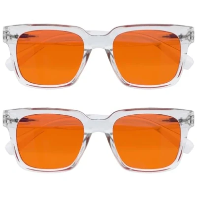 OPULIZE ERA Sleep and Recovery Glasses Orange Lens 99.9% Blue Light Blocking Anti Reflective Glare 2 Pack UV400 Protection Oversized Frame Night Clear Men Women