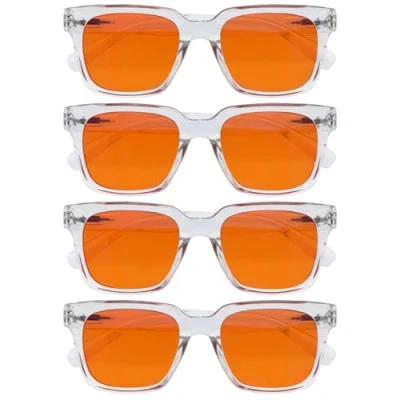 OPULIZE ERA Sleep and Recovery Glasses Orange Lens 99.9% Blue Light Blocking Anti Reflective Glare 4 Pack UV400 Protection Oversized Frame Night Clear Men Women