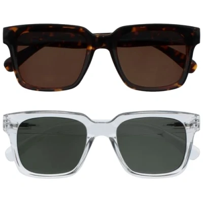 OPULIZE ERA Sunglasses Brown/Green Lens 2 Pack Anti reflective Glare Polarised Lenses With UV400 Protection Oversized Rectangular Frame Spring Hinges Brown/Clear Mens Womens