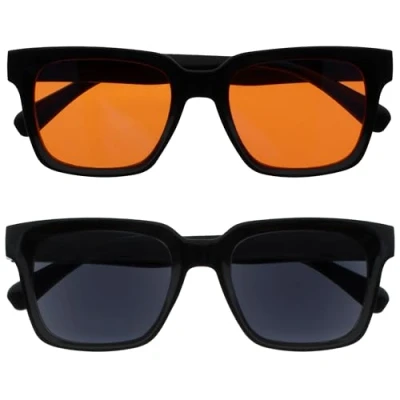 Meditation for your eyes – The most advanced lenses we’ve ever made, that turn visual noise and distracting light into calm for every part of your day. Polarised Glasses with UV400 Protection – Designed for sunny days, ERA’s lenses block UVA & UVB rays and reduce harsh sunlight with polarised clarity—ideal for driving, walking, or outdoor activity. Stylish Sunglasses – No magnification, just elevated style. ERA’s oversized square frame adds a bold, premium look to your style - ideal for sunshine eye protection. Ultimate Eye Comfort with Anti-Reflective Lenses – ERA’s advanced AR, anti-glare technology reduces harsh reflections from bright lights - helping your eyes feel relaxed and calm all day long. Colour & Lens Type: Black - Orange / Black Tinted Lens - 2 Pack - Pouches Included