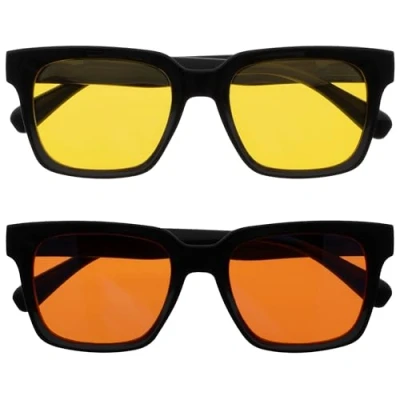 Meditation for your eyes – The most advanced lenses we’ve ever made, that turn visual noise and distracting light into calm for every part of your day. Polarised & UV400 Protection – Designed for sunny days, ERA’s lenses block UVA & UVB rays and reduce harsh sunlight with polarised clarity—ideal for driving, walking, or outdoor activity. Stylish Sunglasses – No magnification, just elevated style. ERA’s oversized square frame adds a bold, premium look to your style - ideal for sunshine eye protection. Ultimate Eye Comfort with Anti-Reflective Lenses – ERA’s advanced AR, anti-glare technology reduces harsh reflections from bright lights—helping your eyes feel relaxed and calm all day long. Colour & Lens Type: Black - Yellow / Orange Lens - 2 Pack - Pouches Included