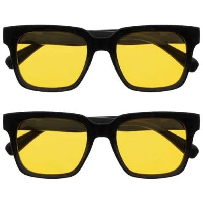 Meditation for your eyes – The most advanced lenses we’ve ever made, that turn visual noise and distracting light into calm for every part of your day. Polarised Glasses with UV400 Protection – Designed for sunny days, ERA’s lenses block UVA & UVB rays and reduce harsh sunlight with polarised clarity—ideal for driving, walking, or outdoor activity. Stylish Sunglasses – No magnification, just elevated style. ERA’s oversized square frame adds a bold, premium look to your style - ideal for sunshine eye protection. Ultimate Eye Comfort with Anti-Reflective Lenses – ERA’s advanced AR, anti-glare technology reduces harsh reflections from bright lights - helping your eyes feel relaxed and calm all day long. Colour & Lens Type: Black - Yellow Lens - 2 Pack - Pouches Included