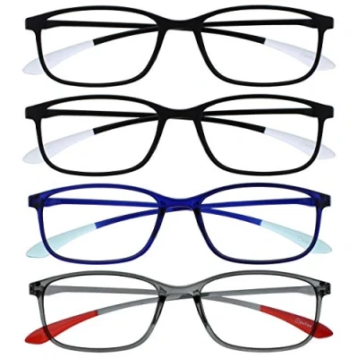 OPULIZE Ice 4 Pack Super Lightweight Reading Glasses Black Blue Grey Womens Mens RRRR61 1137 +3.50