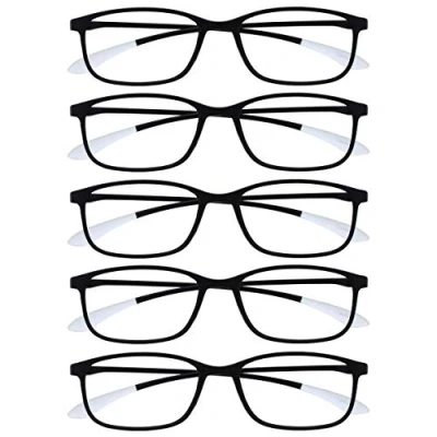 OPULIZE Ice Reading Glasses 5 Pack Ultra Lightweight Scratch Resistant Black Grey Tip Frame Mens Womens RRRRR61 1 +1.50