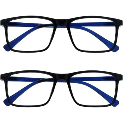 OPULIZE Ink Reading Glasses 2 Pack Large Rectangular Frame Black Blue Arm Spring Hinges Scratch Resistant Mens Womens RR4 1 +2.50