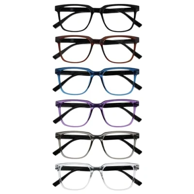 OPULIZE LEO Reading Glasses 6 Pack Large Rectangular Frame Black, Brown, Blue, Purple, Grey, Clear Mens Womens Spring Hinges RRRRRR55 12357C +3.50