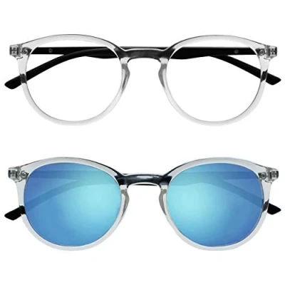 OPULIZE Met Twin Pack Reading Glasses With Sunglasses Large Round Clear Black Mens Womens Spring Hinges RS60 C +1.50