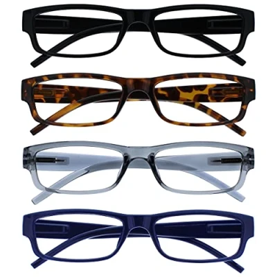 OPULIZE Reading Glasses Black Brown Grey Blue Lightweight Readers Value 4 Pack Mens Womens RRRR32 1273 +2.00