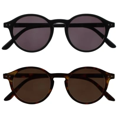 OPULIZE REY Sunglasses 2 Pack Retro Round Frame Matt Black, Brown Tortoiseshell Mens Womens Spring Hinges SS56 12