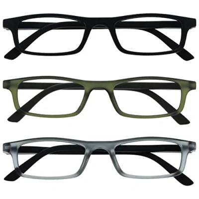 OPULIZE Ted Reading Glasses 3 Pack Narrow Matt Lightweight Frame Black Transparent Khaki Grey Spring Hinges Scratch Resistant Mens Womens RRR17 167 +2.00