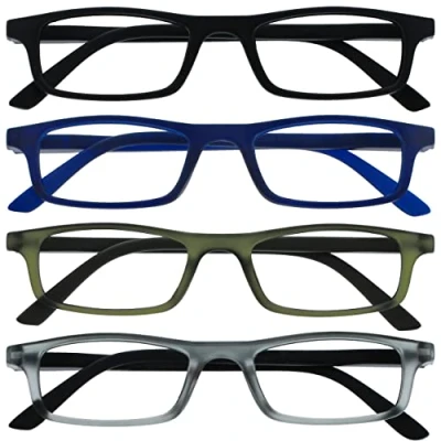 OPULIZE Ted Reading Glasses 4 Pack Narrow Matt Lightweight Frame Black Navy Blue Transparent Khaki Grey Spring Hinges Scratch Resistant Mens Womens RRRR17 1367 +1.50