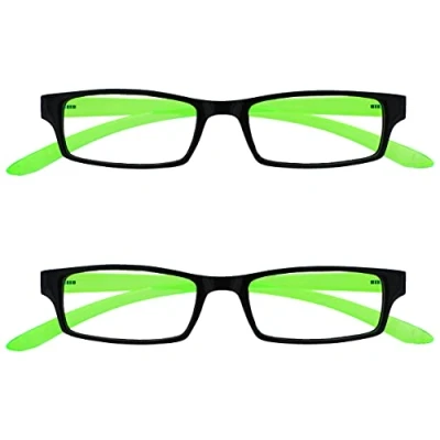 OPULIZE UV Reader Black Bright Green Neck Specs Reading Glasses Value 2 Pack Womens Mens Spring Hinges UVR2PK021 +1.50