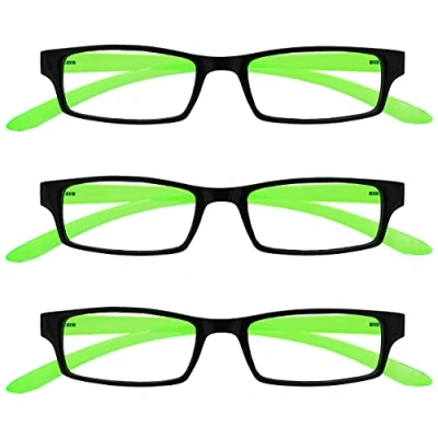 OPULIZE UV Reader Black Bright Green Neck Specs Reading Glasses Value 3 Pack Womens Mens Spring Hinges UVR3PK021 +1.00