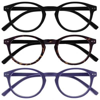 Opulize Zen Reading Glasses 3 Pack Cool Round Frame Spring Hinges Scratch Resistant Matt Black Shiny Dark Brown Purple Mens Womens RRR24 125 +2.50