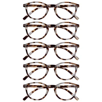 OPULIZE Zen Reading Glasses 5 Pack Cool Round Frame Spring Hinges Scratch Resistant Matt Light Brown Tortoiseshelll Mens Womens RRRRR24 1T +1.50