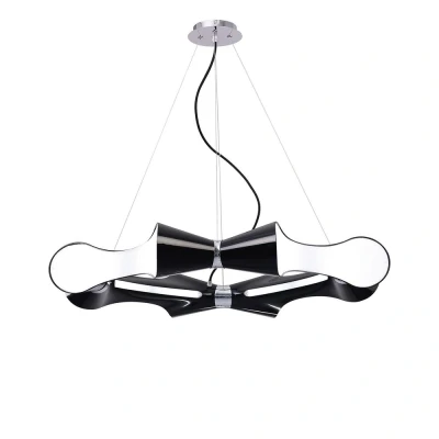 Ora Ceiling Pendant 8 Flat Round Light E27, Gloss Black, White Acrylic, Polished Chrome