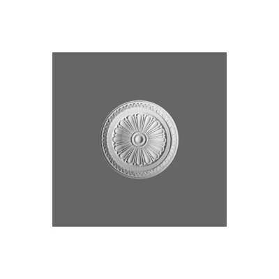 General description At around 13 inches across, the Orac Decor R14 Ceiling Rose features an impressive traditional floral design. Its lightweight and resilient construction makes for easy installation, while the large sunflower-like pattern brightens up any ceiling. Technical specifications Length: 3 cm Diameter: 33 cm Width: 33 cm Height: 3 cm Diameter Ø: 33.5 cm Max. drilling diameter: 2.5 cm Material: Purotouch® Basic colour: white Adhesive consumption: approx. 55 ml Style: Art Nouveau Material properties: lightweight, sturdy, dimensionally stable Suitable for: indoors and outdoors Installation Can be installed with cartridge-based adhesives. Mechanical fixing (screws or nails) is recommended for larger designs to prevent any risk of falling on an illuminated bulb. Usage Each R14 ceiling rose has a pre-applied base coat and requires just one coat of paint for an excellent finish. Other information Manufacturer: Orac Decor Manufacturing country: Belgium Suitable adhesive: Decofix