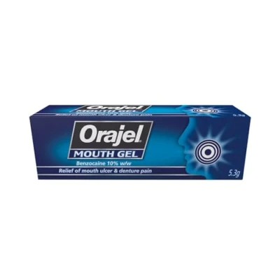 Orajel Mouth Gel, Denture and Ulcer Relief, Fast Acting Oral Care Treatment, Benzocaine 10%, 5.3g