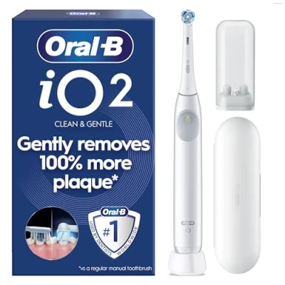 Oral B iO2 Simple White Electric Toothbrush, 1 Toothbrush Head, Travel Case, Refill Holder, Designed by Braun