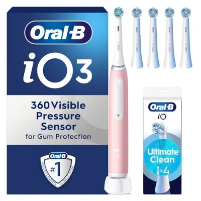 Oral B iO3 Electric Toothbrushes Adults, 4 Toothbrush Heads, 3 Modes With Teeth Whitening, 2 Pin UK Plug, Pink