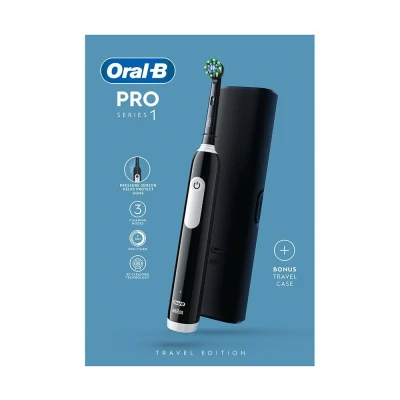 Oral B Pro 1 Electric Toothbrush with 3D Cleaning, Gifts for Women/Men, Head & Travel Case, Gum Pressure Control, 2 Pin UK Plug, Black