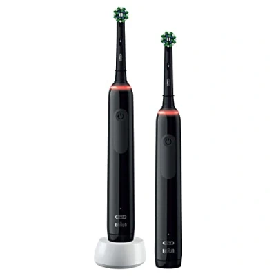 Oral B Pro 3 2x Electric Toothbrushes For Adults, 2 Handles & Cross Action Toothbrush Heads, Modes with Teeth Whitening, Pin UK Plug, 3900, Black