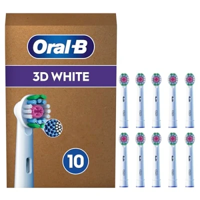 Oral B Pro 3D White Electric Toothbrush Head, X Shaped Bristles And Unique Polishing Cup For Teeth Whitening To Remove Surface Stains, Pack of 10 Heads, Suitable Mailbox,