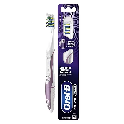 27 Advantage card points. ORAL-B PRO-3DWHITE PULSAR Battery-Powered Toothbrush – For Whitening & Plaque Removal, Medium, 1 FREE Delivery on orders over 45 GBP.