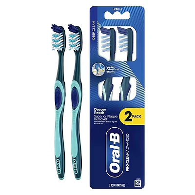 ORAL B PRO CLEAN ADVANCED Manual Toothbrush Deep Cleaning & Plaque Removal Medium Bristles, 2