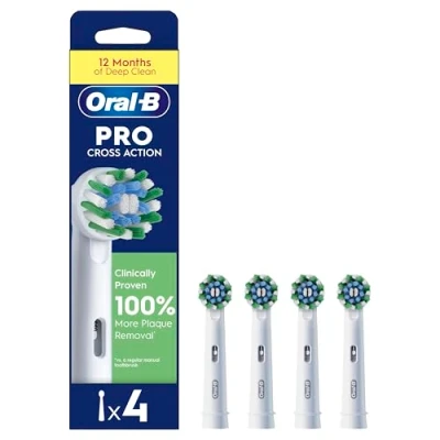 ENHANCED CLEANING: Removes Up to 100 Percent more bacterial plaque for cleaner teeth and healthier gums vs. a manual toothbrush X-SHAPE BRISTLES: Only genuine Oral-B brush heads feature X-shape bristles that clean in areas that regular ones cannot reach for optimal cleaning efficacy DEEP CLEANING: Oral-B Cross Action features unique 16° angled bristles to perfectly adapt to each tooth for deep cleaning COMPATIBLE FIT: Guaranteed fit with Oral-B electric rechargeable toothbrushes except Pulsonic and iO toothbrushes USAGE INDICATOR: Brush head usage indicator: bristles turn from green to yellow reminding you when to change to keep 100 Percent cleaning efficacy