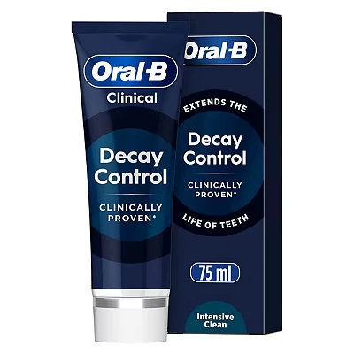 Oral-B Clinical Decay Control Toothpaste 75ml uses stannous fluoride to reverse calcium loss, strengthen enamel, and reduce plaque and cavities. Clinically proven and trusted, it supports comprehensive oral health when used twice daily.