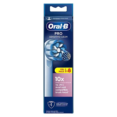 Oral B Pro Sensitive Clean Electric Toothbrush Head, X Shaped & Extra Soft Bristles for Gentle Brushing Plaque Removal, Pack of 8 Heads, White (Packing May Vary)