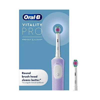 Oral B Vitality Pro Electric Toothbrushes For Adults, Fathers Day Gifts Him / Her, 1 Handle, 2 Toothbrush Heads, 3 Brushing Modes Including Sensitive Plus, Pin UK Plug, Purple