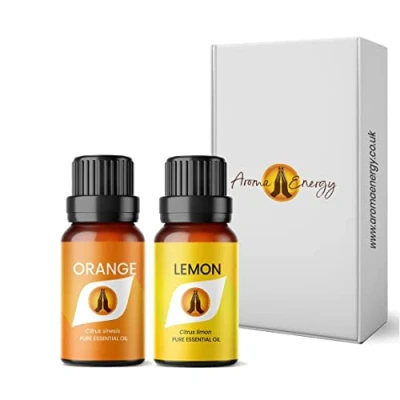 Orange & Lemon Essential Oil Set 2 x 10ml Diffuser for Home, Candle Making, soap, Wax Melts, Massage, Perfume, Aromatherapy Gift Box Vegan Made in UK
