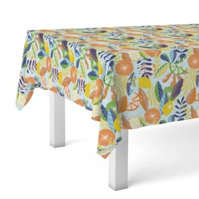 STAIN RESISTANT ORANGE MANDARINA Oilcloth Tablecloth – Fruity and colourful design with citrus tones and tropical leaves SALE TO CUT: Choose from 10 available sizes, adapted to any table HEAVY DUTY MATERIAL - 90% PVC and 10% Polypropylene - Waterproof, flexible and durable EASY CLEANING - Just a damp cloth to keep it always spotless Perfect for indoor and outdoor use: kitchen, dining room, terrace or garden