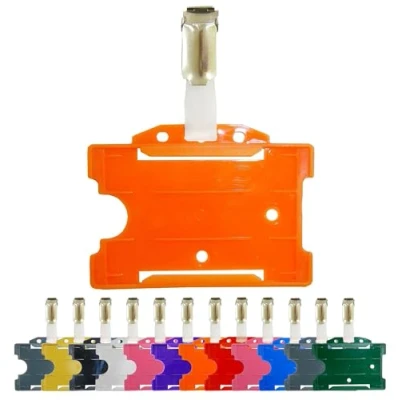 Orange Single Sided ID Card Badge Holder & Crocodile Strap Pocket Clip (Holders are Now Bio Degradable) Work PCL Media ltd
