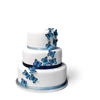 20 Pre Cut Black and Blue Butterflies Edible Wafer Paper Cake Cupcake Toppers You will receive a packet of 20 pre-cut butterfly toppers as shown in picture. Printed on quality wafer paper with edible inks. Shelf life of 9-12 months if kept dry Ready to place on top of your cake/cupcakes Fully Edible - Wafer Paper ingredients - Water, Sunflower Oil and Potato Starch