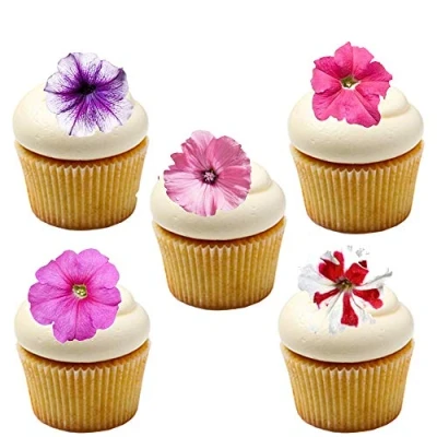 30 Pink and Purple Petunia Flower edible wafer paper cupcake toppers decorations Flowers are as shown in the picture approx 4cm across - Just cut them out and they are ready to use You will receive a mix of pink & purple Petunia flower topper images which REQUIRE CUTTING OUT and are then ready to place straight on your cakes Fully edible with a shelf life of at least 12 months from purchase Fully Edible - Wafer Paper ingredients - Water, Sunflower Oil and Potato Starch, Manufacturer: Orange Trading Dartmouth Ltd