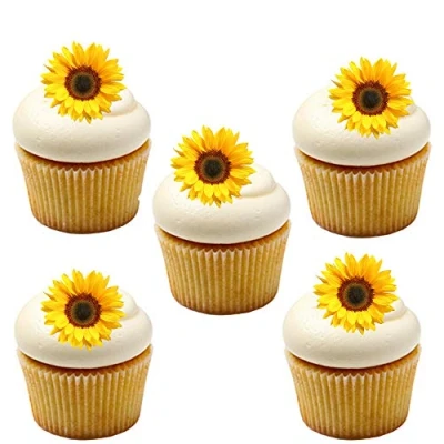 Orange Trading Dartmouth Ltd 30 Yellow Sunflower Flower Edible Wafer Paper Cake Toppers Decorations