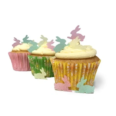 60 Pre Cut Mixed Easter Bunnies Pink Green Yellow Edible Wafer Paper Cake Cupcake Toppers You will receive a packet of 60 pre cut toppers. You will receive 20 of each colour. Pre cut and ready to use. Printed on quality wafer paper with edible inks. Shelf life of 9-12 months if kept dry Ready to place on top of your cake/cupcakes Fully Edible - Wafer Paper ingredients - Water, Olive Oil and potato starch