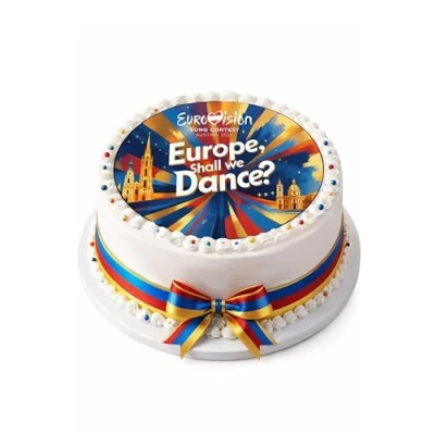 A4 Edible Decor Icing Sheet Eurovision Song Contest 2026 Vienna, Austria 7-8" Circle Cake Topper Decoration - Great for larger cakes This lovely cake topper is printed on an A4 Decor icing sheet with edible inks. You will receive images exactly as shown in the picture, and you just simply cut around the circle, peel off the plastic backing and place on top of your iced cake. Fully edible with a shelf life of at least 12 months from purchase if kept dry and in sealed packet. Fully Edible - Fully Edible - Fully Edible - Decor Icing Sheet Ingredients: Thickener (E1422,E1412), Maltodextrin, Hunecetant E422, Sugar, Water, Stabilizers(E414,E460i), Dextrose, Emulsifiers (E435, E491,E471), Food Colour, Flavours, Acidity Regulator E330, Preservative E202, Sucralose, Manufacturer: Orange Trading Dartmouth LTD