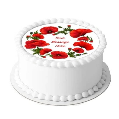 Orange Trading Dartmouth LTD A4 Edible Decor Icing Sheet PERSONALISED Red Poppy Flower 7 8" Circle Cake Topper Decoration Great for larger cakes