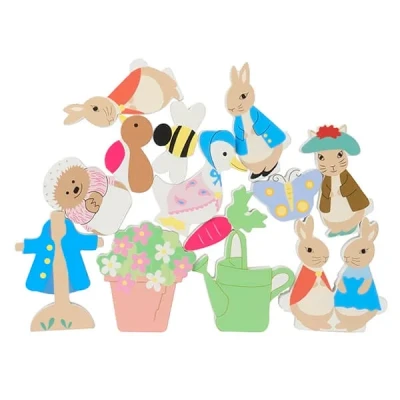 The Peter Rabbit Balancing Game features 12 beautiful hand painted wooden pieces that encourage imaginative play. They include Beatrix Potter characters and shapes from the garden.The colourful blocks are made from sustainable wood which supports responsible management of world forests.The set comes with a cotton drawstring bag that is ideal for storage when the set is not in use or great for taking on the go for outdoors play or play dates.Suitable for children 12 months and over.