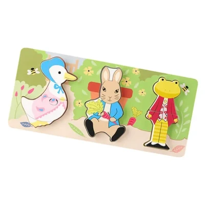 The Peter Rabbit Mini Puzzles feature Peter Rabbit, Jemima PuddleDuck and Jeremy Fisher. Each of the puzzle pieces are painted in bright colours for colour and shape recognition.Each of the pieces are chunky which are easy for little hands to hold and can be set into matching wooden board to make up a lovely picture. Perfect for delivering motor skills and hand-eye coordination.Made from sustainable wood which supports responsible management of world forests. Suitable for children 12 months and over.