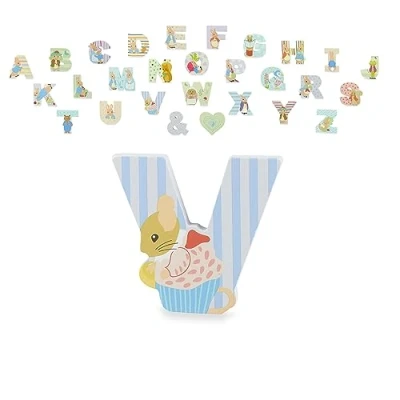 PERSONALISED BABY WITH OFFICIAL LICENSED PETER RABBIT TOYS: A beautiful wooden letter V featuring Mrs. Tittlemouse, with each letter featuring a different Beatrix Potter character and pattern. ABC animal wooden letters are the perfect addition to any little ones nursery or children's bedroom. Create a personalised toy box, cupboard door, a coat peg or simply to decorate a wall with a child's name or use them to teach their ABCs SAFE FOR NURSERY: Our wooden alphabet letters are painted in beautiful pastel colours with non toxic paint and make the perfect nursery and bedroom accessories. All Orange Tree toys are tested both in-house during production and independently to meet European safety standards. Wooden letters are approximately 7 x 7 x 1cms PROMOTES DEVELOPMENT: Make learning fun with Beatrix Potter alphabet letters! Our wooden letters support letter and animal recognition skills; with a variety of colours, characters and shapes, perfect to help stimulate a baby’s visual senses. Enjoy lovable wooden letters with Beatrix Potter letters and Orange Tree Toys! TRUSTED MANUFACTURER: Designed in the UK by Orange Tree Toys, in their headquarters in the Cotswold countryside. Orange Tree toys are environmentally friendly; made from sustainable wood and 100% recyclable packaging. Wooden toys are durable and long lasting; providing hours of fun and play value for children, they can be passed down the generations! PETER RABBIT GIFTS: Perfect Beatrix Potter baby gifts, with Beatrix Potter's famous creation crafted into wooden letters for children's names; they make wonderful 1st birthday gifts for girls and boys, Peter Rabbit Christmas presents, Christening gifts or for another special occasion. Animal theme wooden letters are ideal boys or girls bedroom accessories, wall decor for nursery decoration or children's bedroom