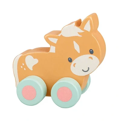 Discover the adorable Orange Tree Toys Pony First Push Wooden Toy, designed for tiny hands to effortlessly grasp and push.Watch your little explorer delight in their adventures with this delightful wooden Pony! Crafted from sustainable wood and featuring charming paintwork, this robust push toy is both eco-friendly and lightweight, perfect for on-the-go fun.Ideal for children aged 1 year and above, this Pony measures 8cm x 7.5cm x 5.5cm, making it a perfect companion for any journey.Packaged in 100% recyclable materials, it's not only fun but also environmentally conscious.