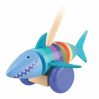The Orange Tree Toys Shark Push Along is fitted with sturdy wheels for enthusiastic play and a smooth-finish handle so it is safe for small hands.Bright and fun colours keep children engaged, while the swishing tale provides hours or entertainment..Made from sustainable wood which supports responsible management of world forests. Suitable for children 12 months and over.
